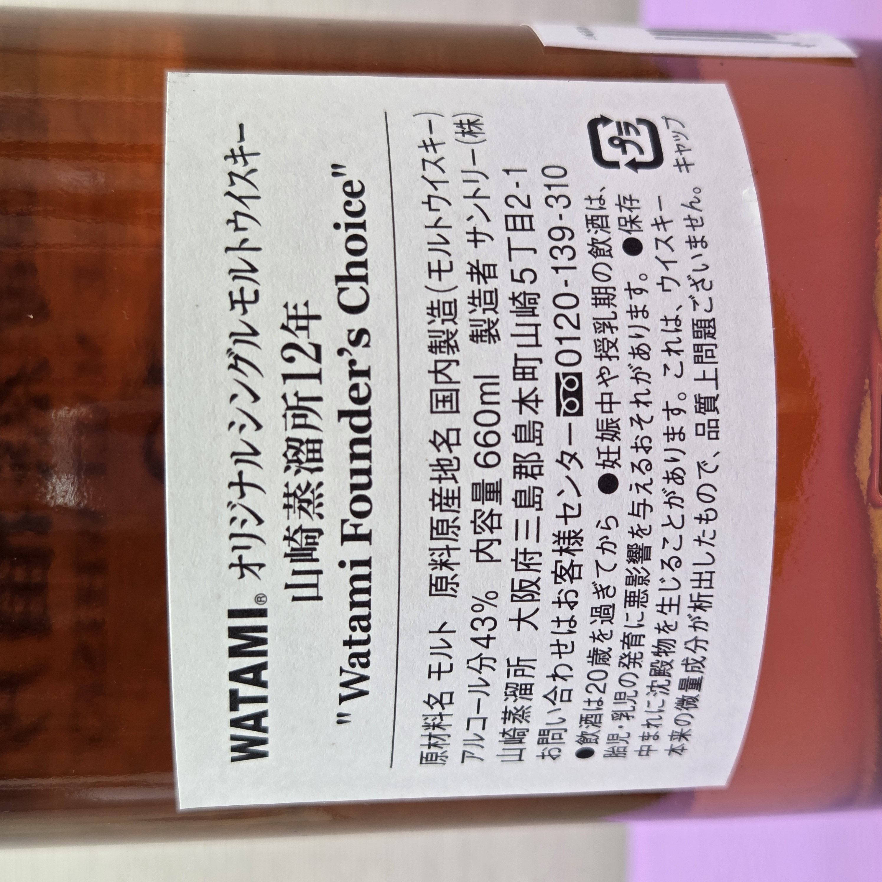 サントリー 山崎蒸溜所 12年 WATAMI ワタミ ファウンダーズ チョイス シェリー樽モルト 渡邉美樹 43% 660ml 箱無し