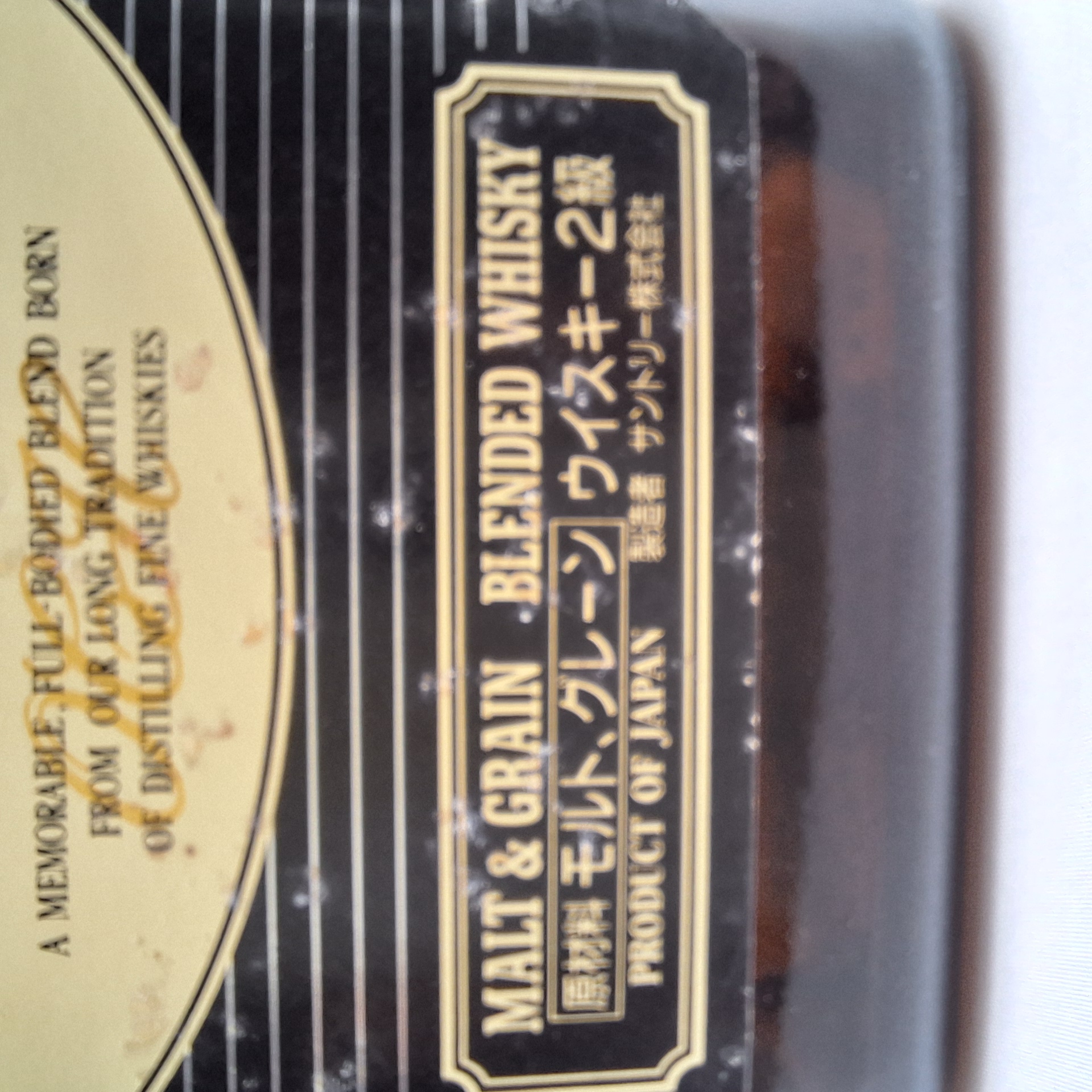 当時の酒税法にもとづいて、2級表記に。当時放映されたCMにはジョン・ローンが出演。またこのウイスキーは 2000年頃まで販売され続けていた息の長い製品。