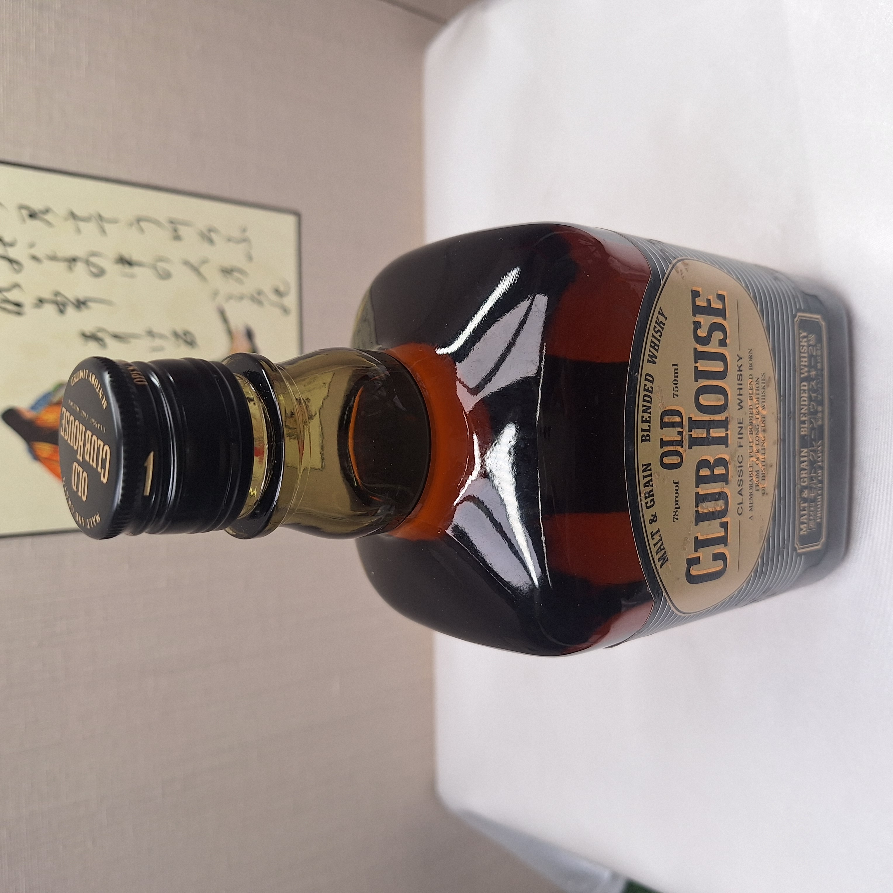 かなり年数のたっている39度750mlのOLD CLUB HOUSE 。ラベルに傷等ダメージが有ります、液面低下(目減り)多少有りますご承知の上お買い求めください。