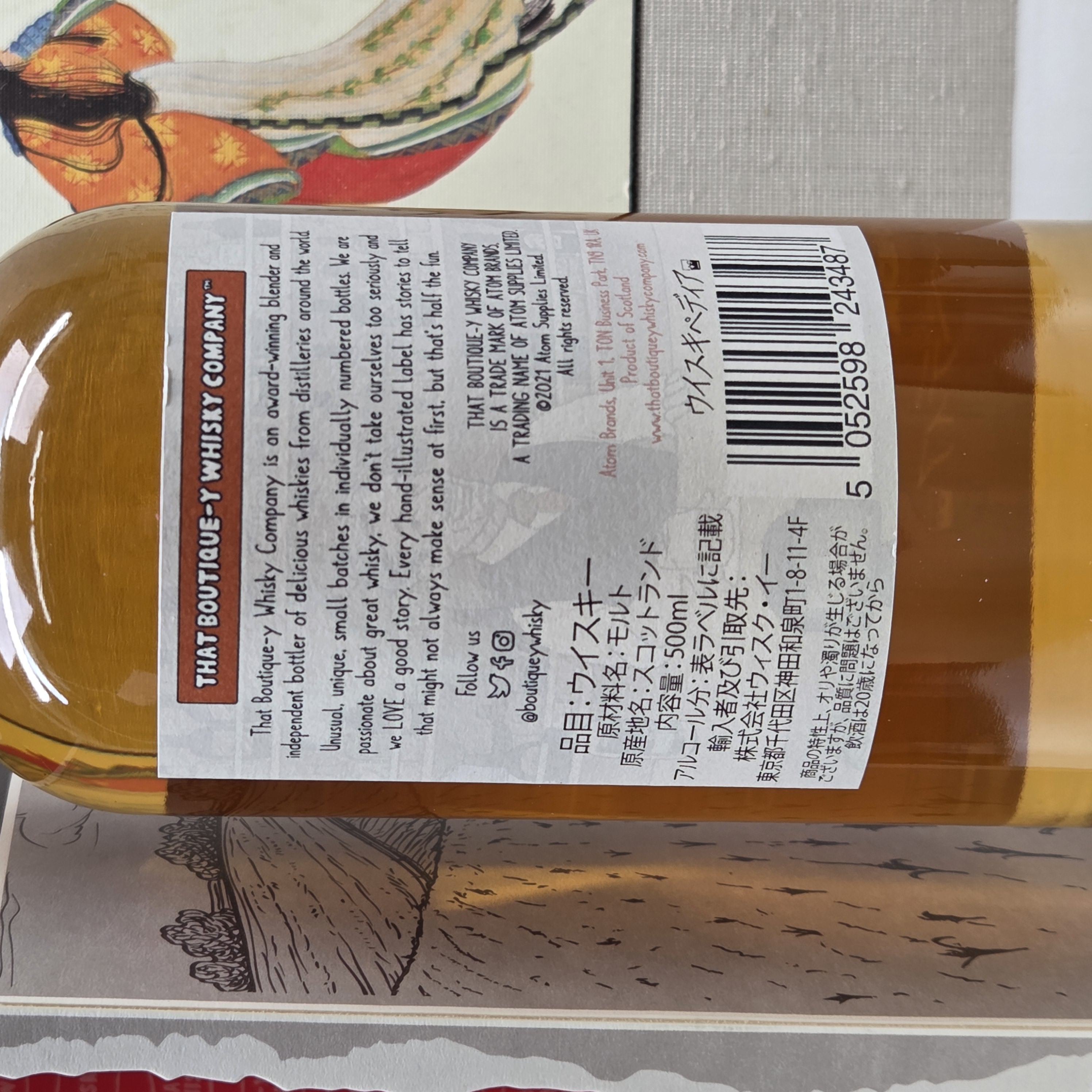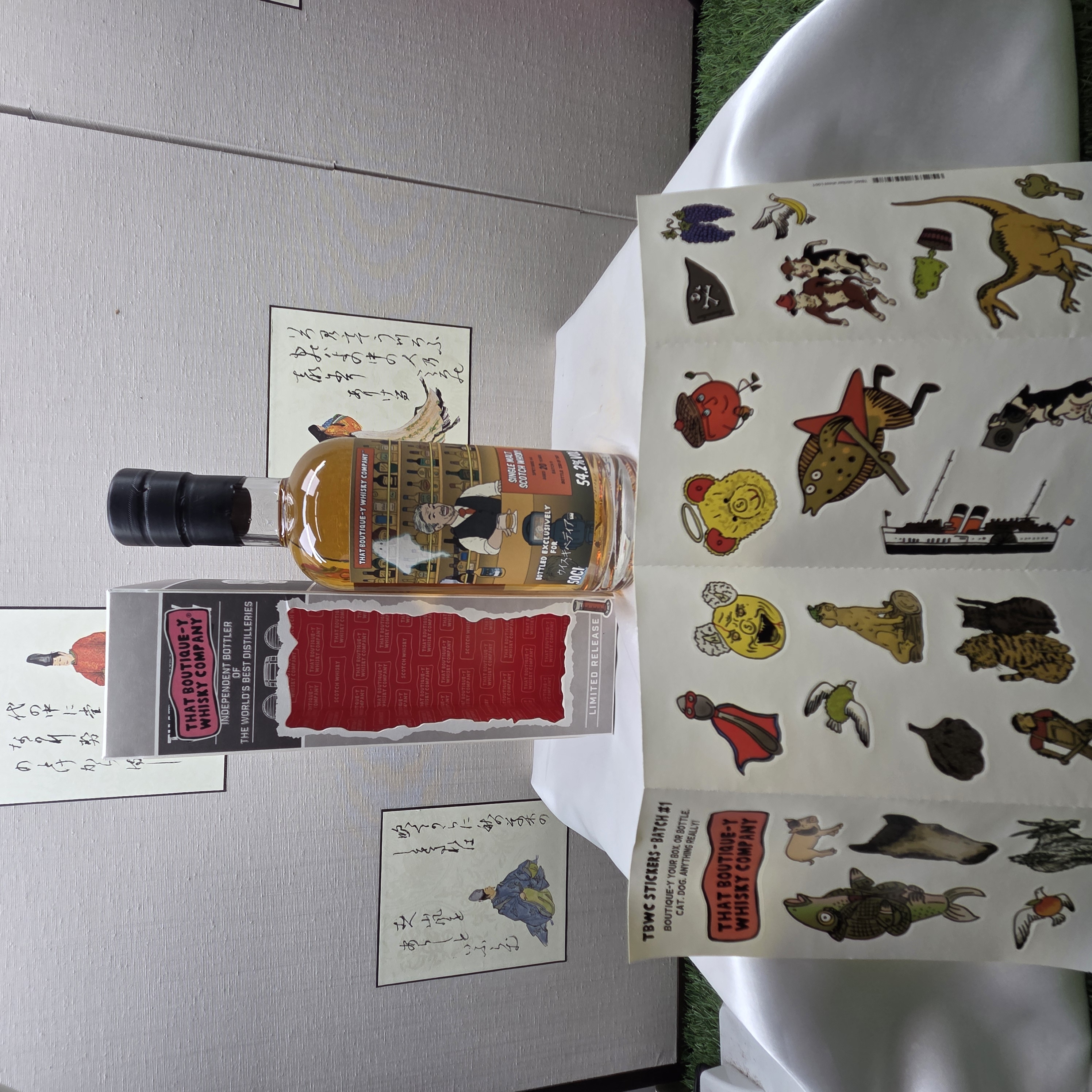 今回特別コラボしたのは、伝説的なウイスキーの数々を世に排出してきたトップブランド・ブティックウイスキー(販売:ウィスク・イー)。蒸溜所にちなんだ面白いストーリーやジョークなどのイラストラベルが有名ですが、今回のコラボでは「ウイスキペディア」に登場するマスターが描かれています。