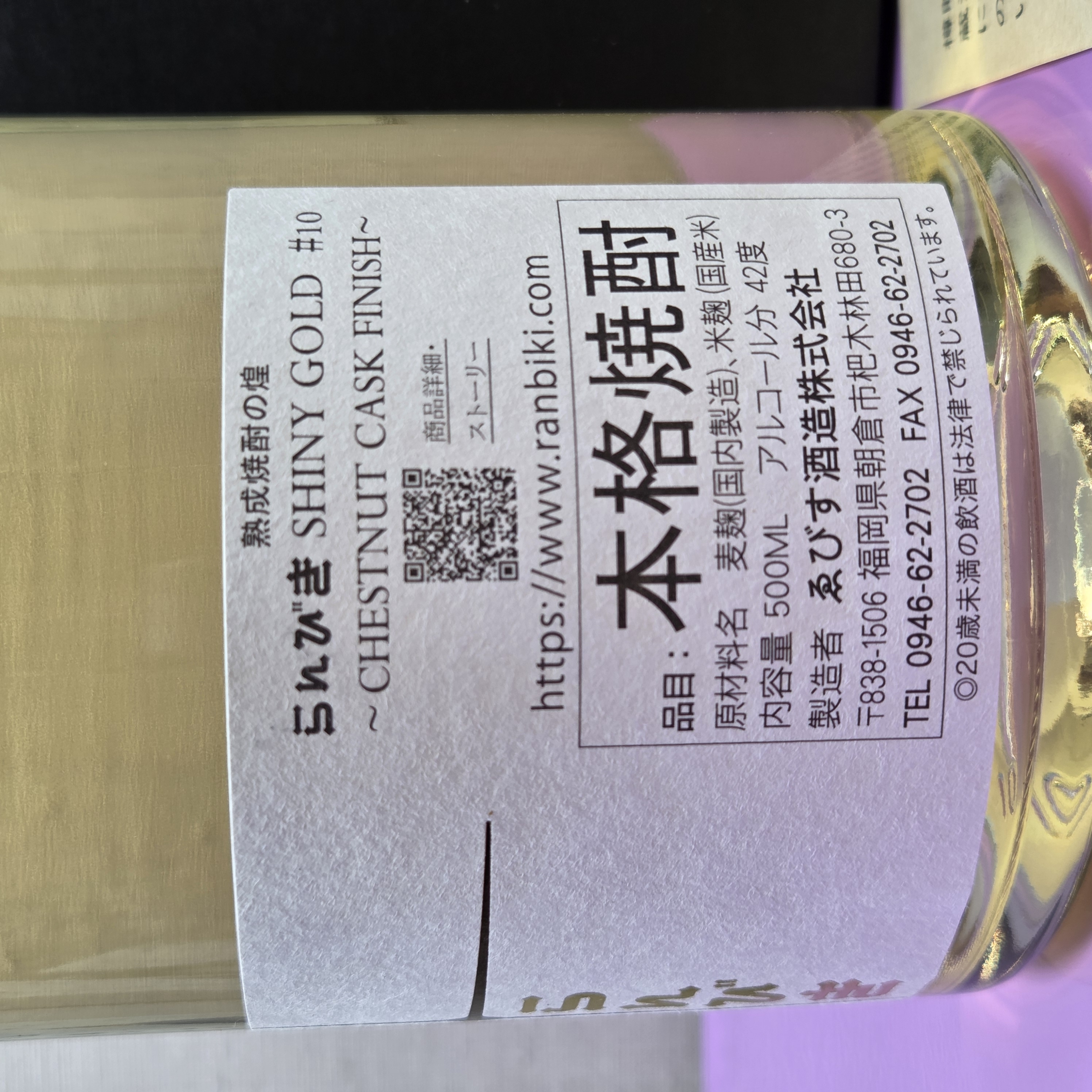 ゑびす酒造 蘭引 SHINY GOLD CHESTNUT CASK FINISH 箱付き 7年熟成 麦焼酎 42度 500ml