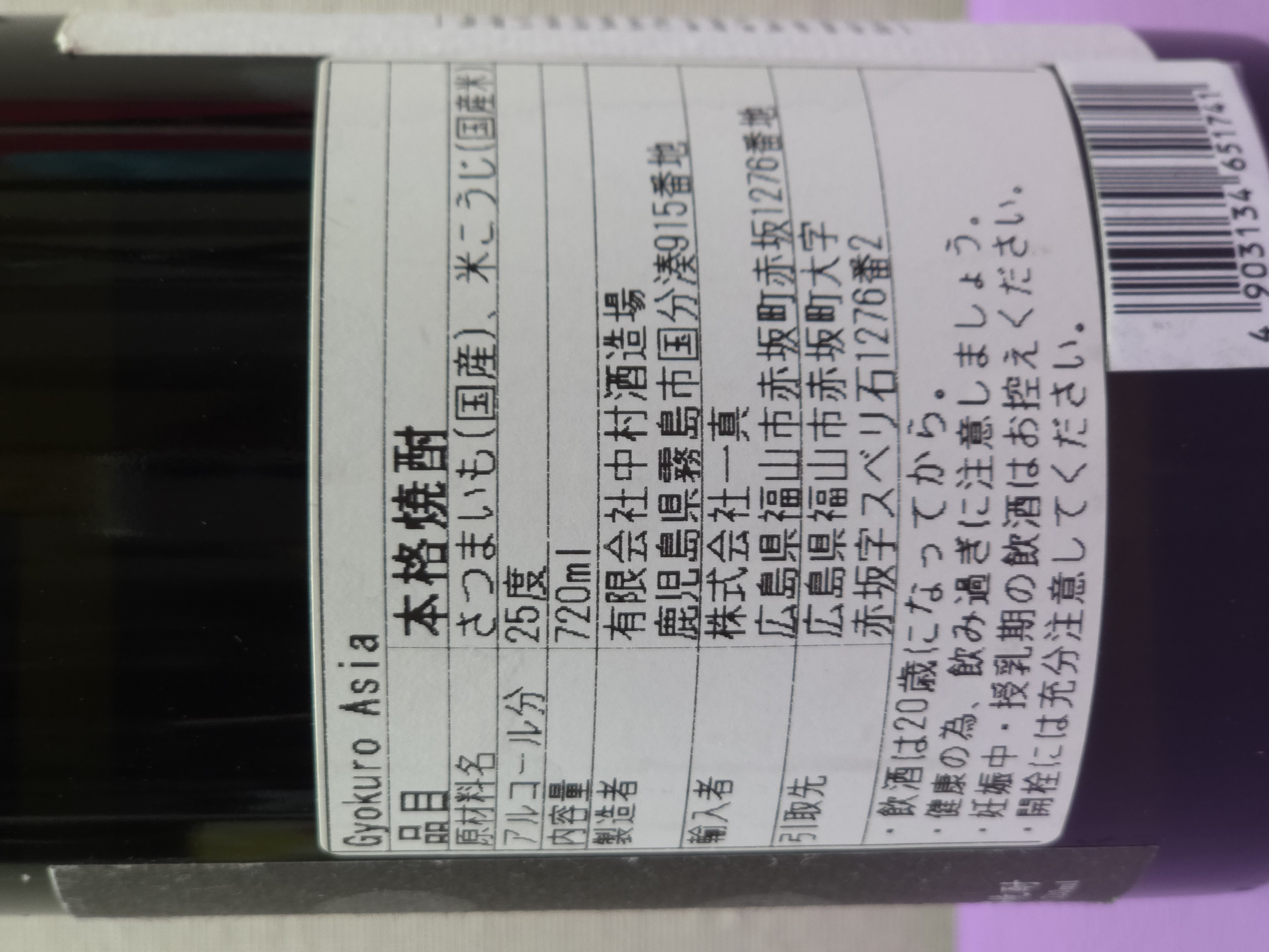 品 目・本格焼酎